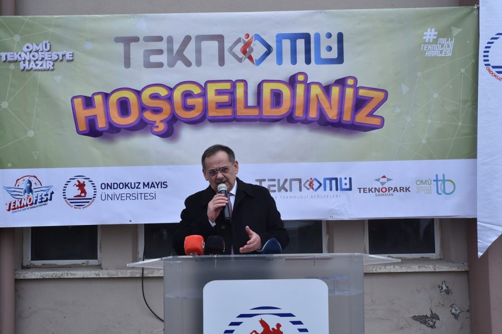 TEKNOMÜ Atölyesi için ciddi bir kütüphaneye ve laboratuvar altyapısına ihtiyaç duyulduğunu belirten Rektör Ünal “Araştırma üniversitesi olma yolunda belirlediğimiz stratejik hedefi gerçekleştirmek adına Trabzon, Kastamunu, Tokat gibi ilerin de bulunduğu havzayı merkeze almak suretiyle özellikle yatırım, istihdam ve girişim için bu bölgede AR-GE’ye yönelik bir laboratuvar altyapısı kurma yönünde planımız mevcut. Elimizdeki cihazların tamamını, sadece OMÜ’deki akademisyenlerin değil, bölgedeki farklı üniversitelerden araştırmacıların da hazırlayacağımız bir protokolle hizmetine sunacağız. Burada hedefimiz; Samsun’un bir çekim merkezine dönüşmesi. Bu kent böyle bir misyona ve coğrafi konuma sahip, bu gücü taşıyor. Bu sebeple TEKNOMÜ Atölyesi’nin açılışı, bizler için son derece anlamlı, teşrifleriniz için çok çok teşekkür ediyorum. İlginiz ve desteğinizi, bizi cesaretlendiren bir eylem olarak görüyoruz. Ülkemizin geldiği noktayı dikkate alırsak dünkü düzenlediğimiz festivallerle bugünküleri yan yana koyduğumuzda doğru yolda olduğumuzu görüyoruz ama biraz daha güçlü ve biraz daha hızlı yürümemiz gerektiğinin farkındayız.” sözlerine yer verdi.